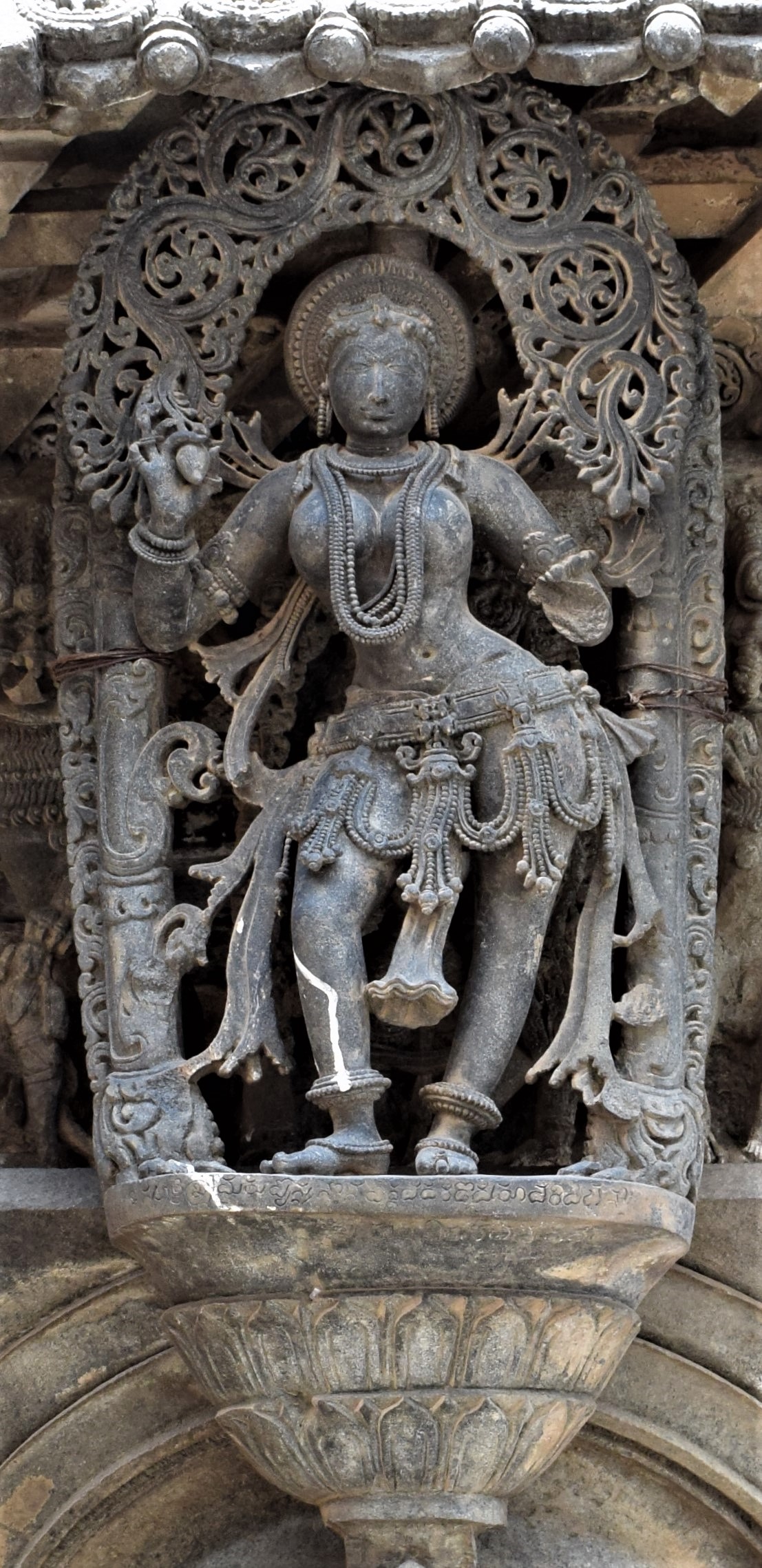 Chennakeshava temple, Beluru, Bracket figure, shilabalike - girl plucking a mango Public Deposited