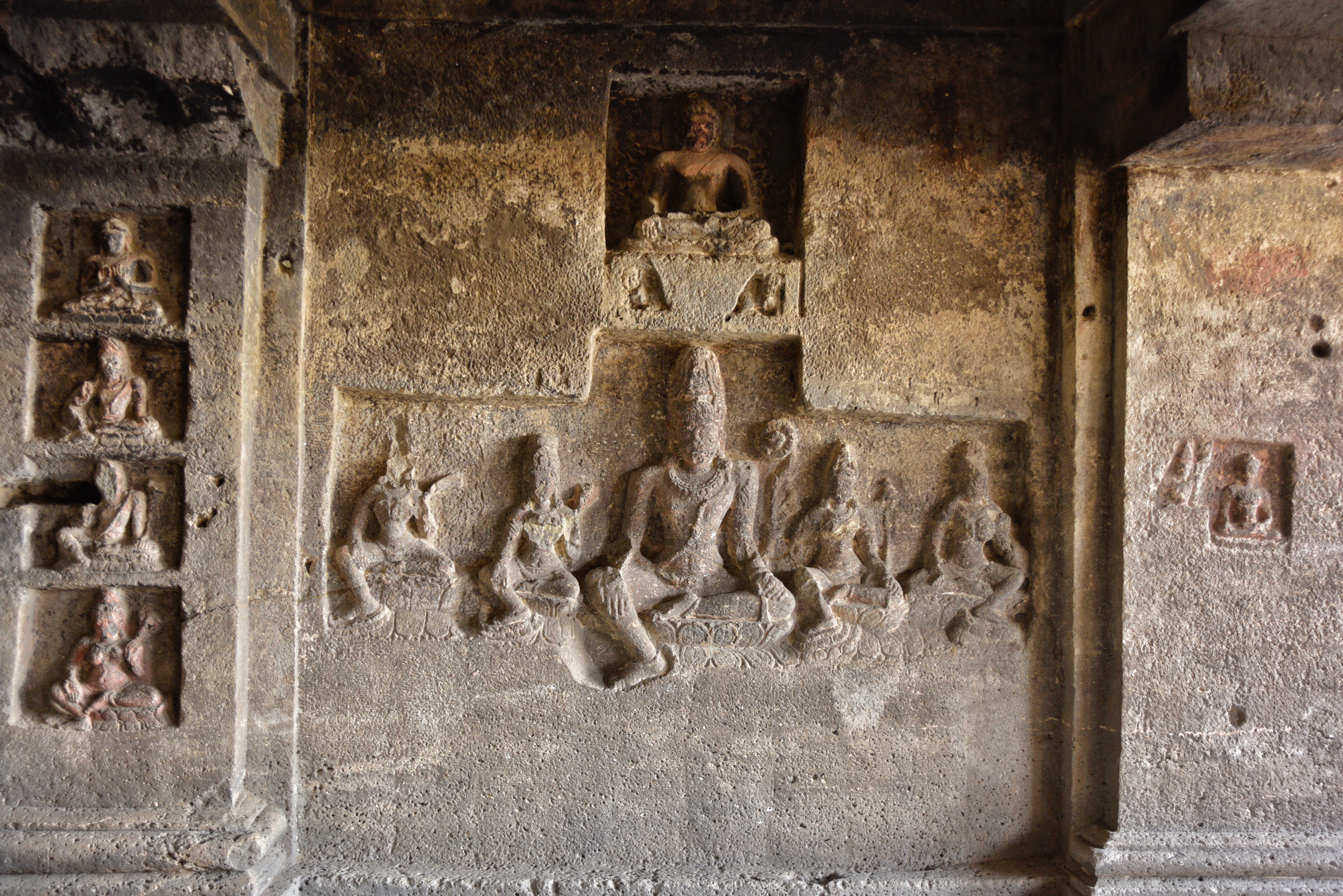 Ellora, Buddhist Architecture, Buddhist figures on the cave wall Público Deposited