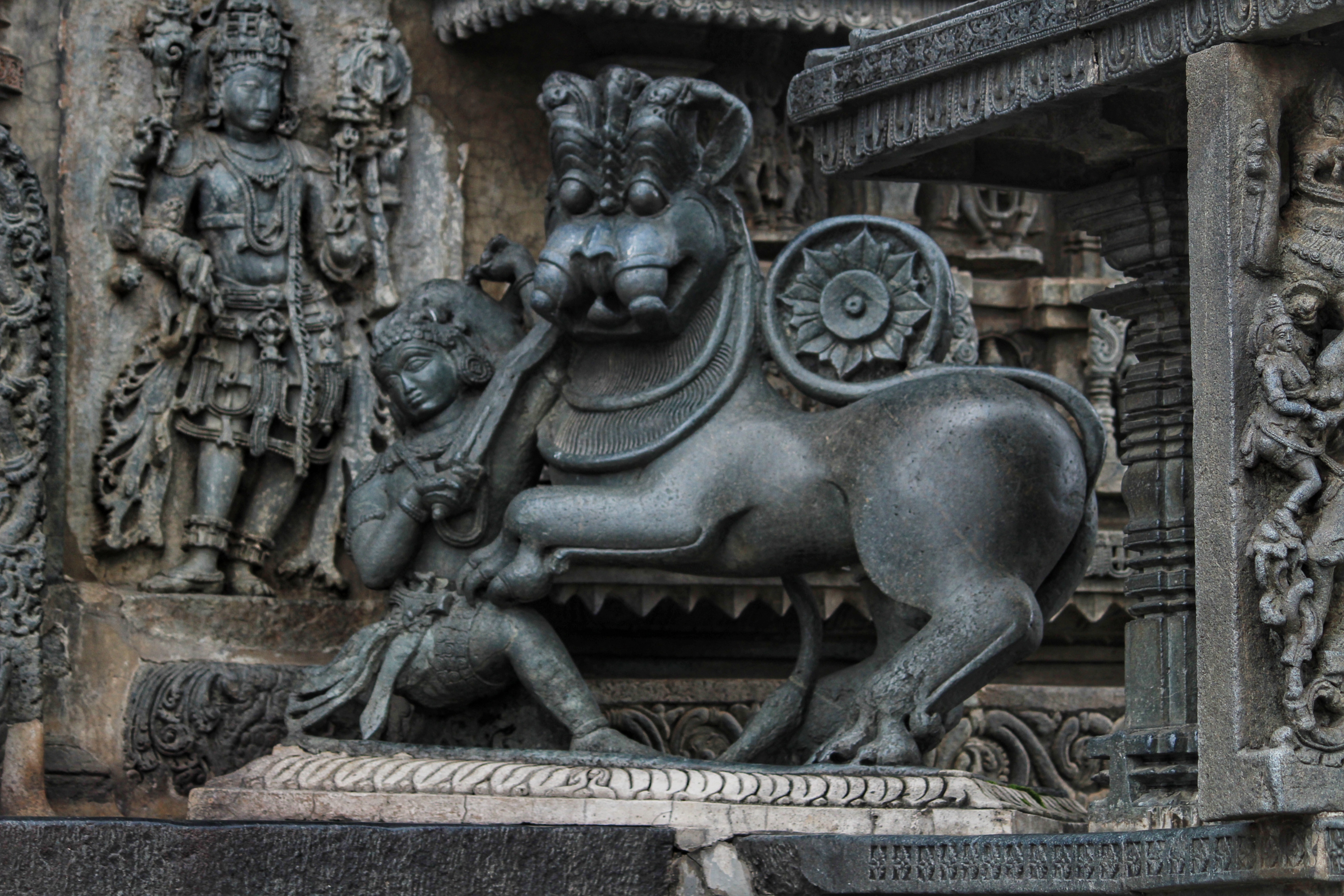 Chennakeshava temple, Beluru, Hoysala symbol of a man named Sala slaying a lion Public Deposited
