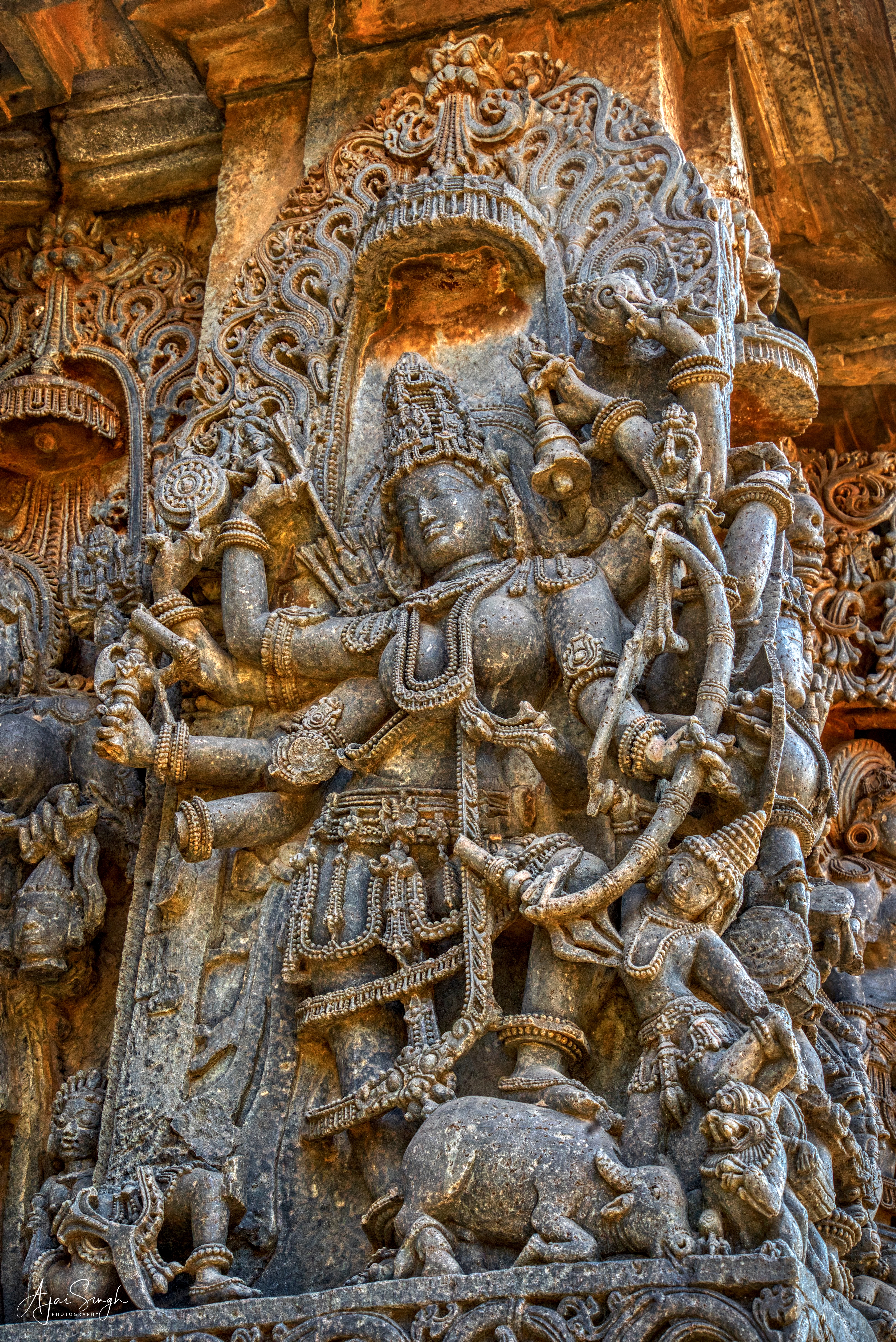 Image courtesy: Brig A.P. Singh - www.collectingmoment.in [ Goddess Durga slaying the buffalo demon Mahishasura. The demon can be seen at the Goddess's feet]