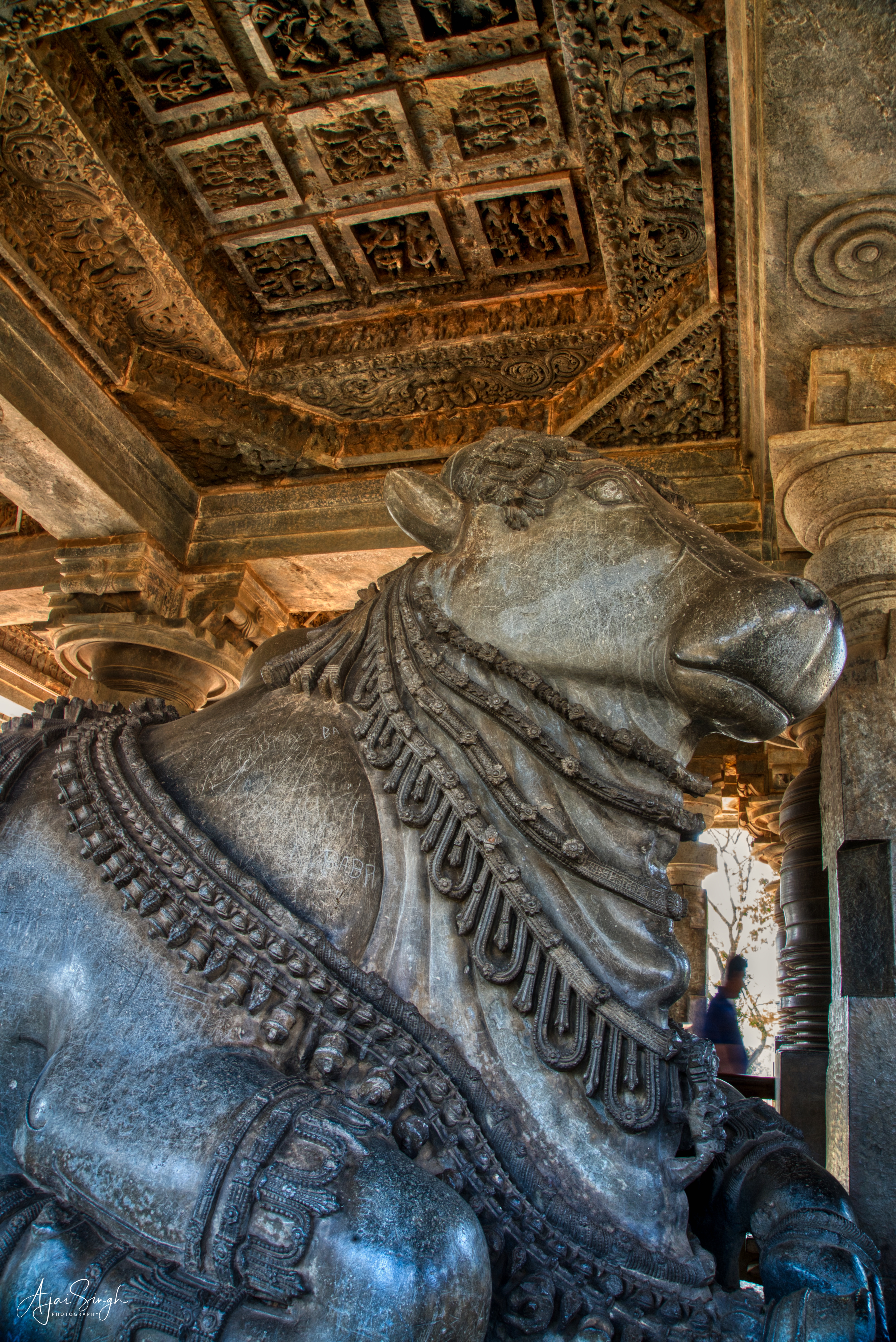 Monolithic Nandi in the southern entrance facing the Hoysaleshwara Shiva Linga - 40