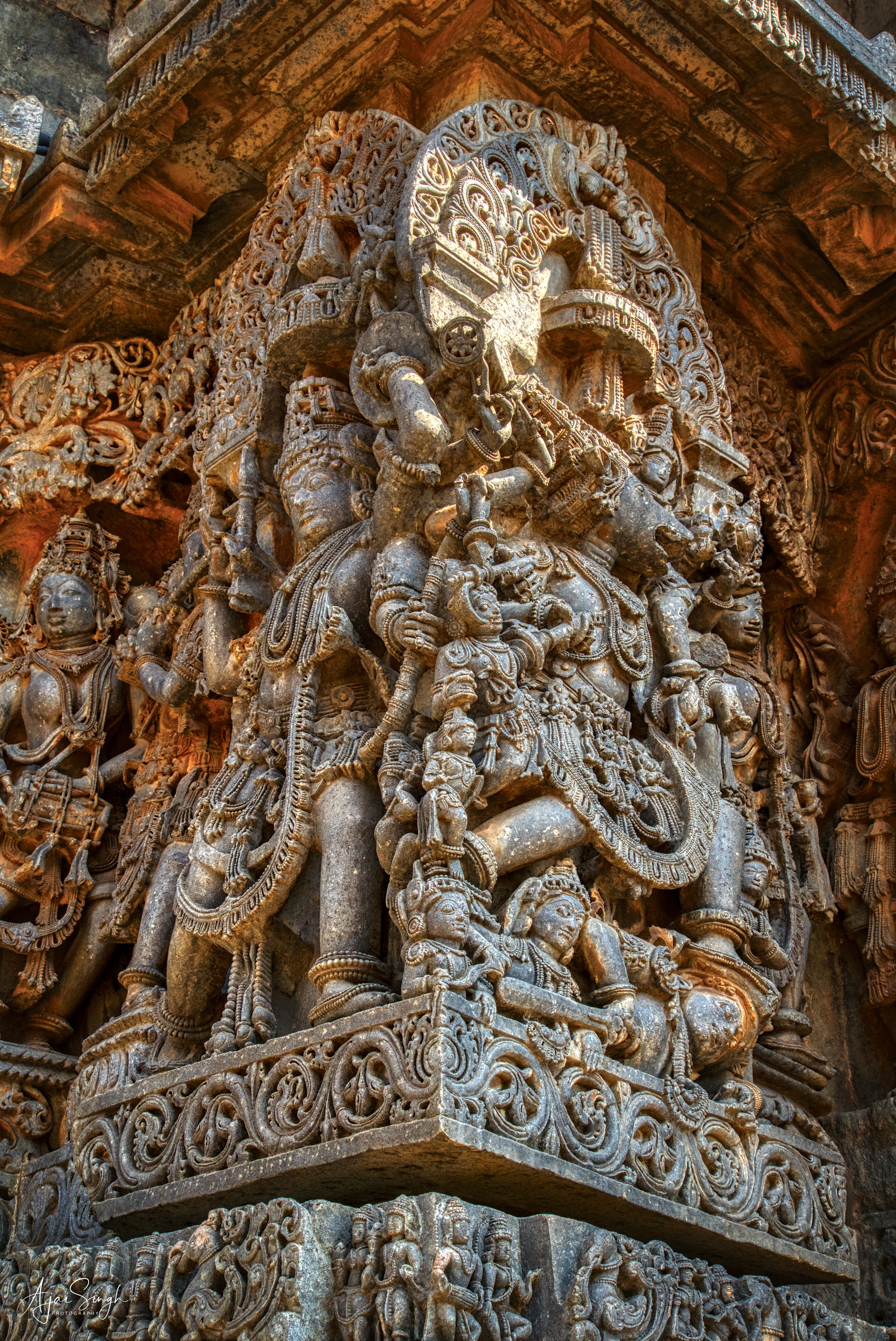 Twin sculptures at the corner - on the right is the Varaha (bore) incarnation of Vishnu - 77