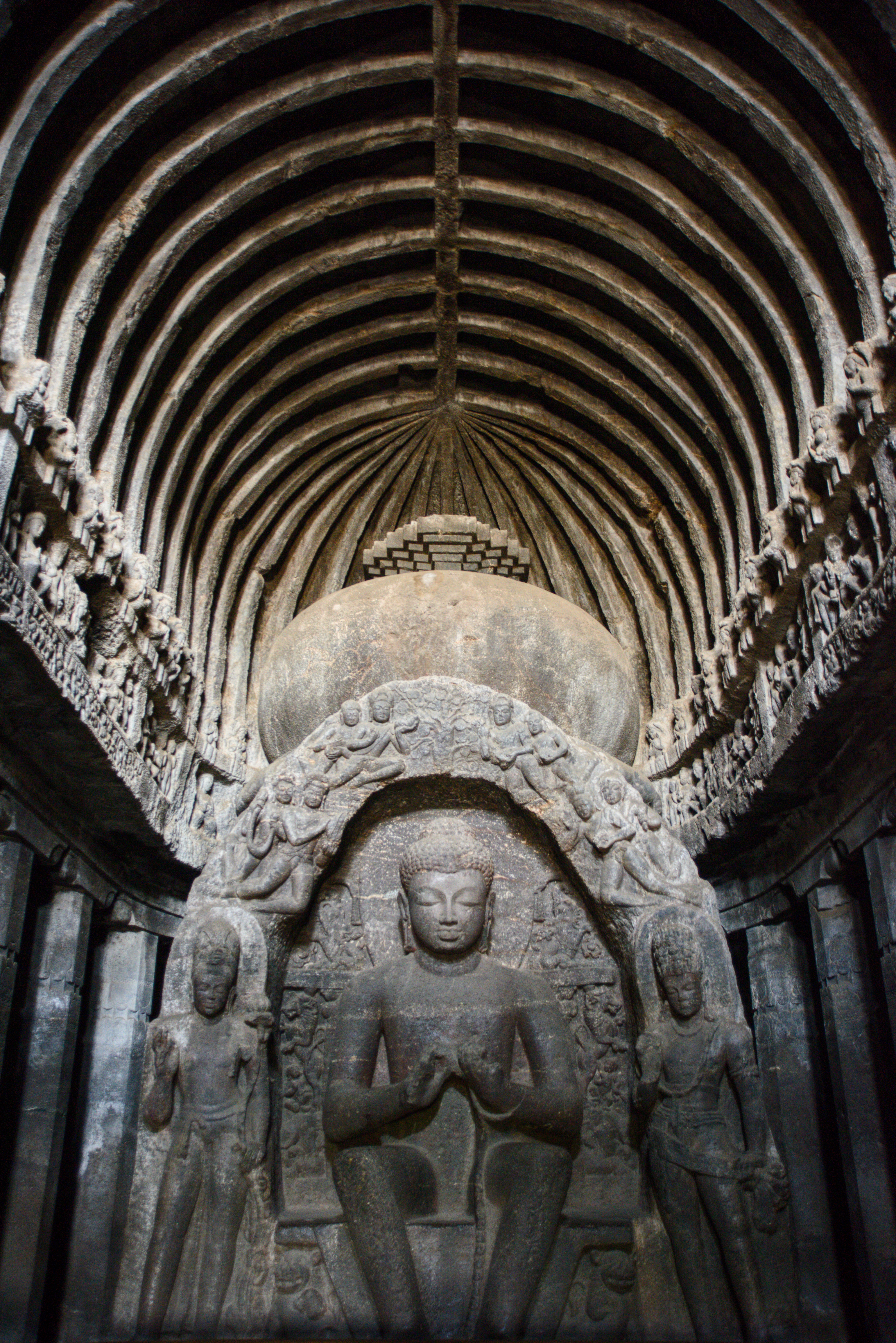 Ellora, Buddhist Architecture, Seated Buddha carved on a stupa in cave 10 Pubblico Deposited