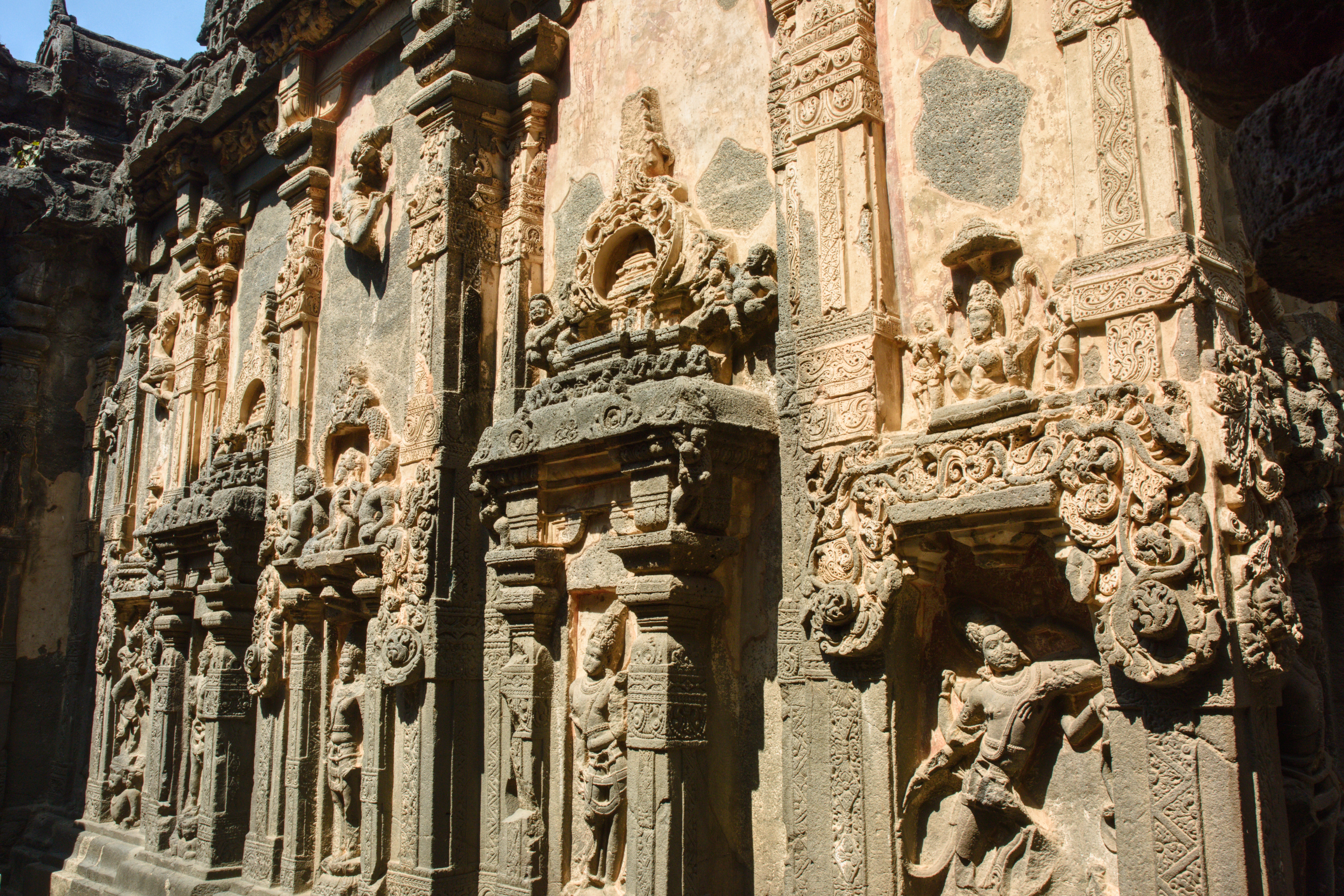 Ellora, Divine sculptures on outer wall of Kailasanath temple Público Deposited