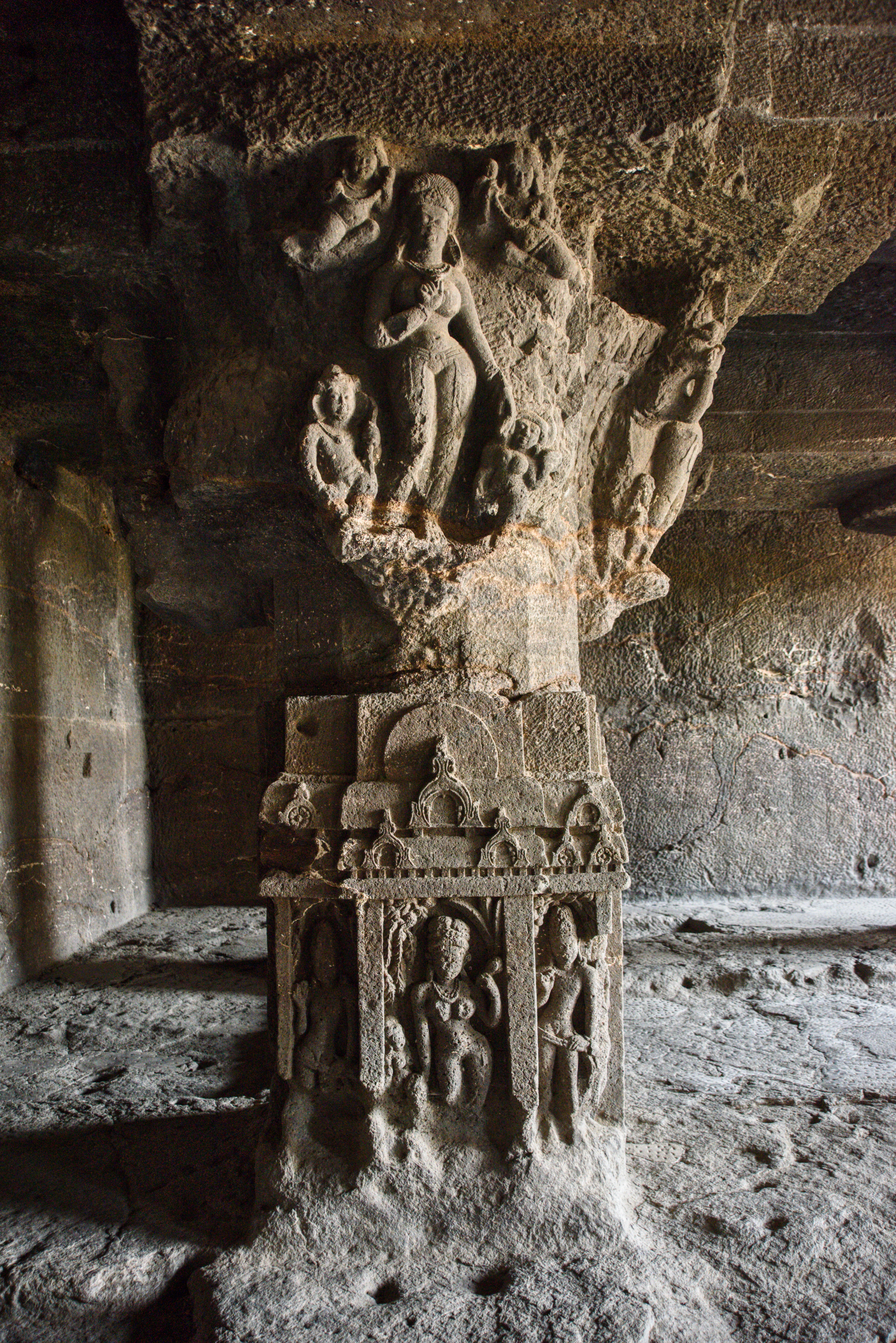 Ellora, Buddhist Architecture, Goddess figure on the pillar Público Deposited