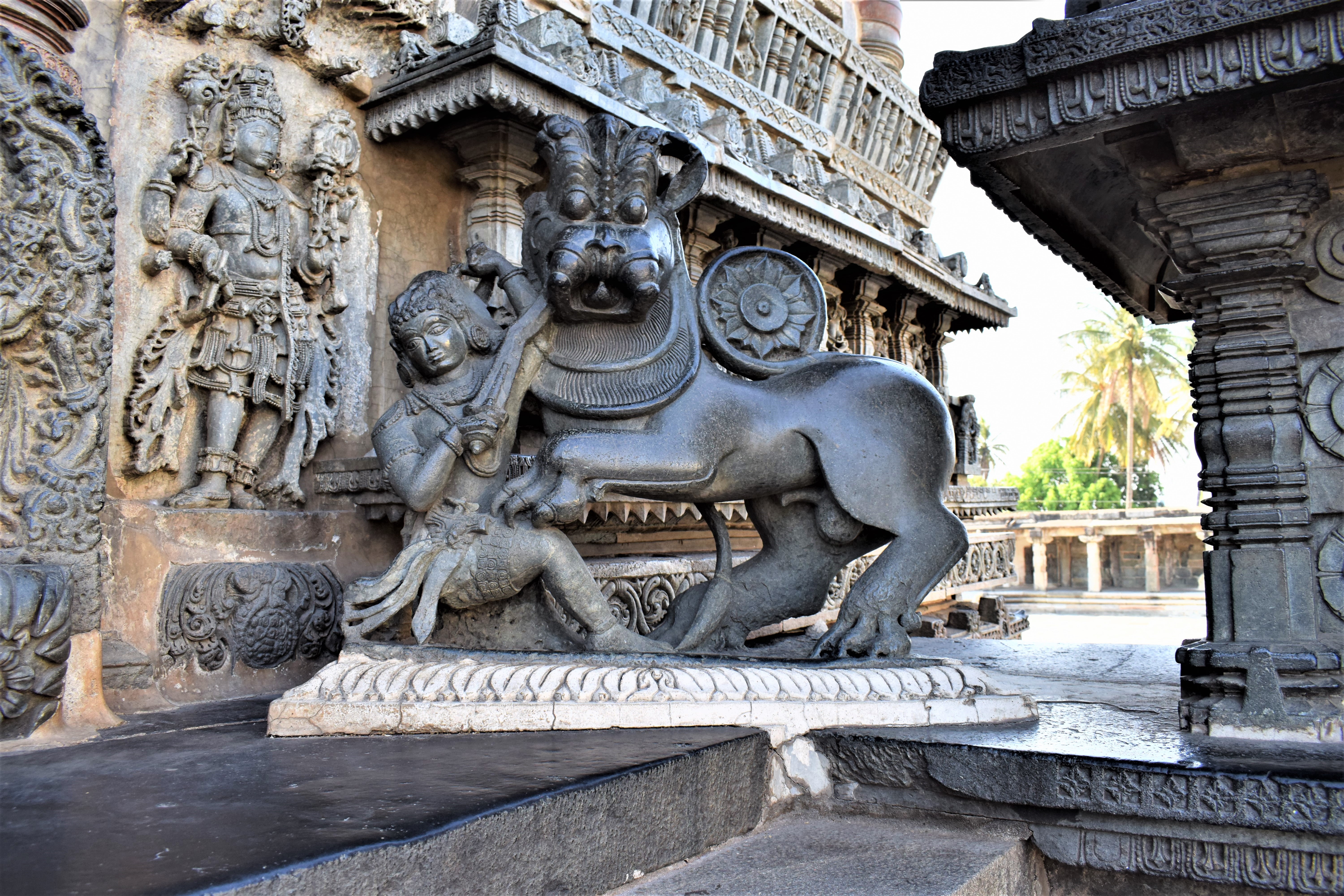Chennakeshava temple, Beluru, Hoysala symbol of a man slaying a lion, to the right of the main door Pubblico Deposited