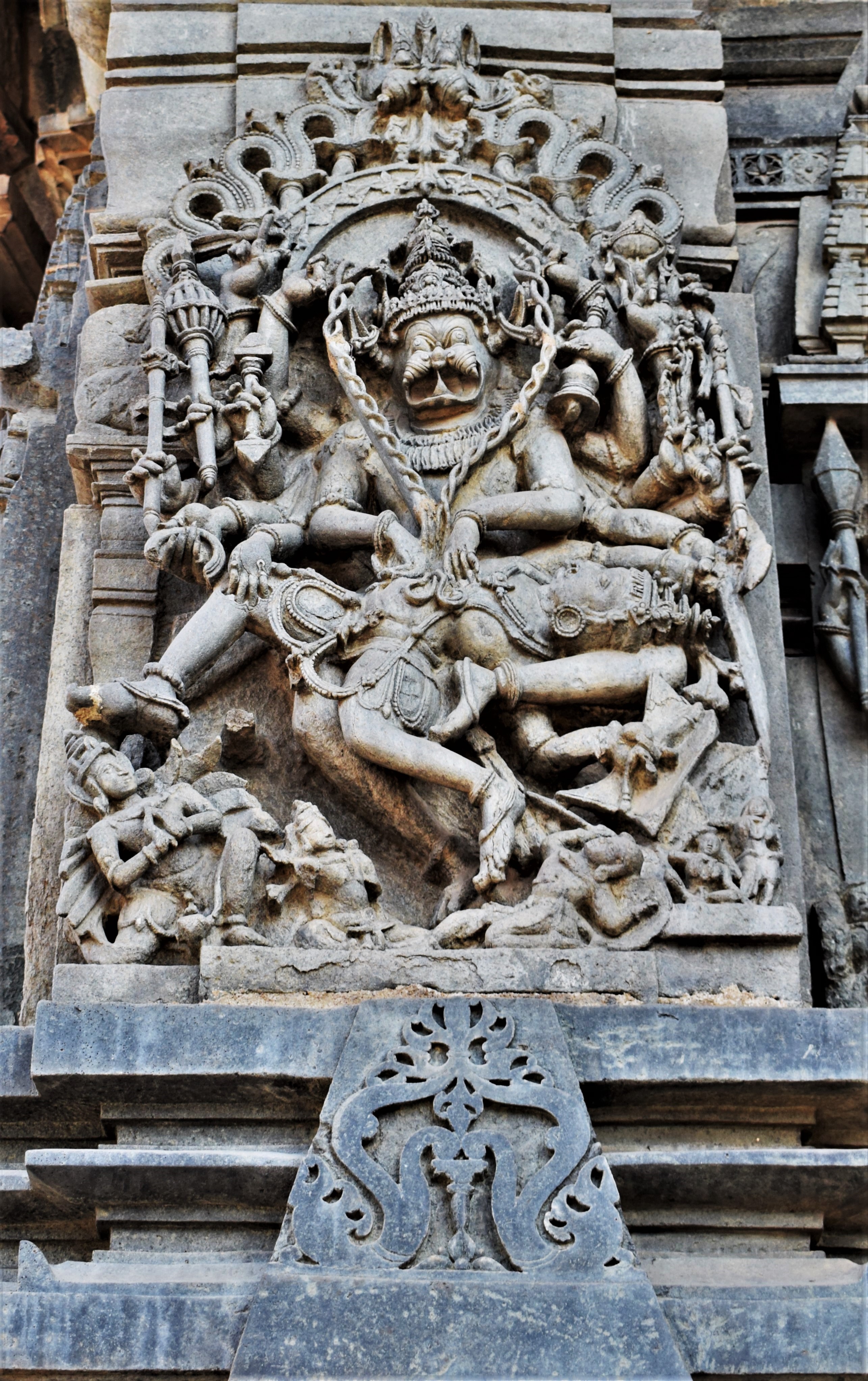 Chennakeshava temple, Beluru, wall reliefs around the sanctum, southern side, SW pillar, Narasimha Public Deposited
