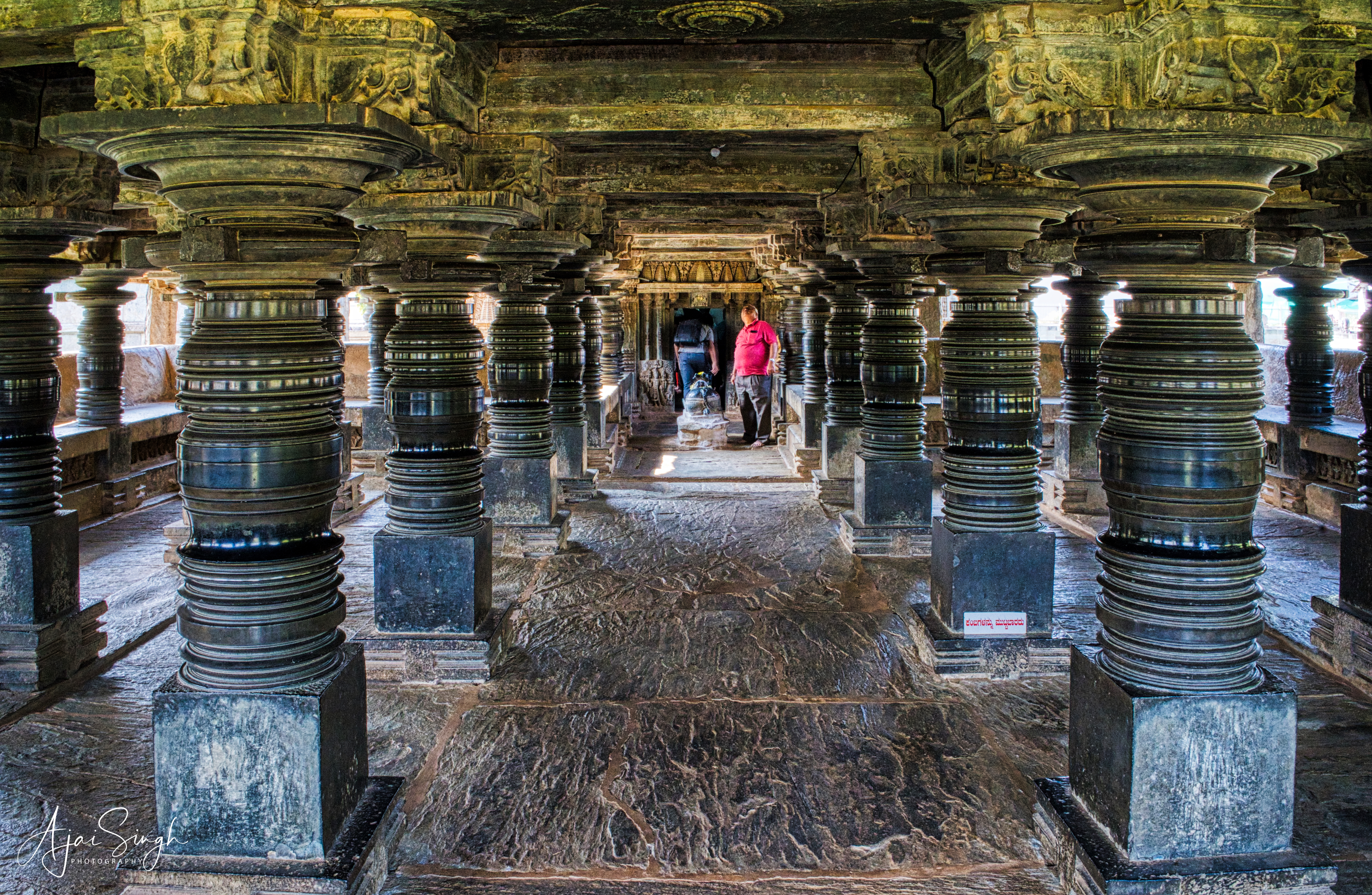 The open mantapa with its unique black pillars which support the ceiling. The polished finish could only be achieved by a lathe-type of machine. Image courtesy: Brig A.P. Singh - www.collectingmoments.in