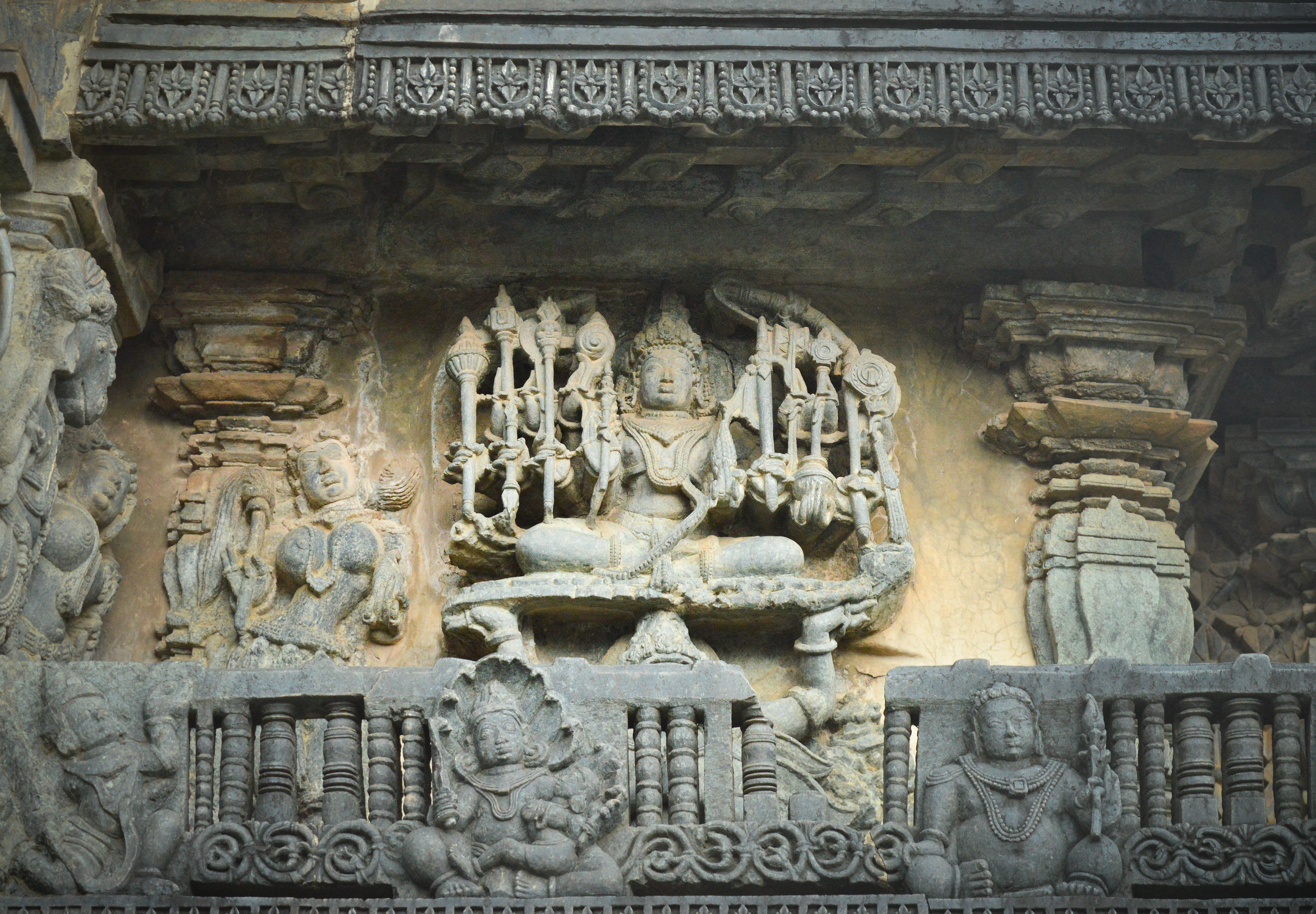 Chennakeshava temple, Beluru, Lord Shiva with multiple arms holding a weapon in each hand