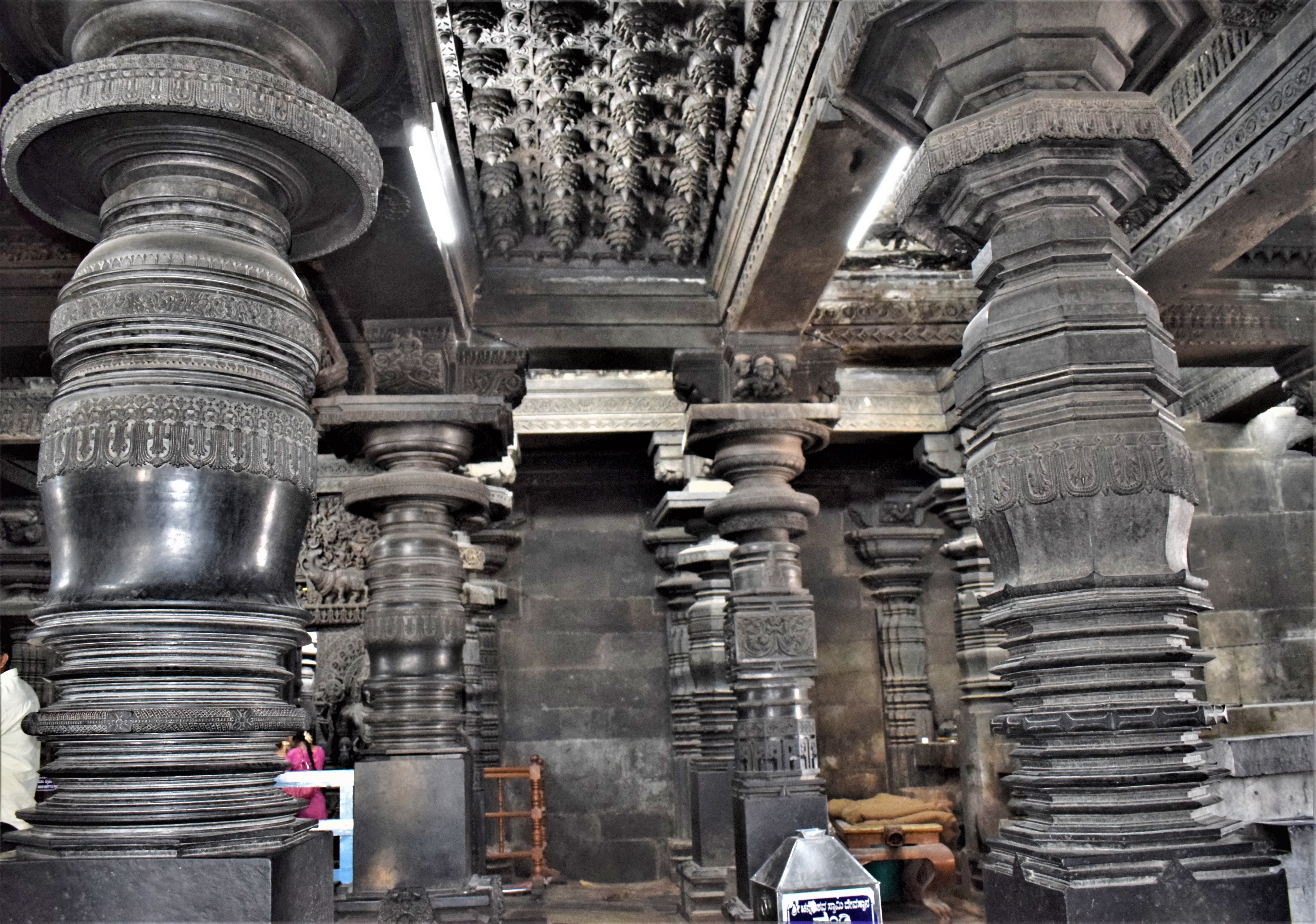 Chennakeshava temple, Beluru, Pillars in the north-west side of Navaranga 公开 Deposited