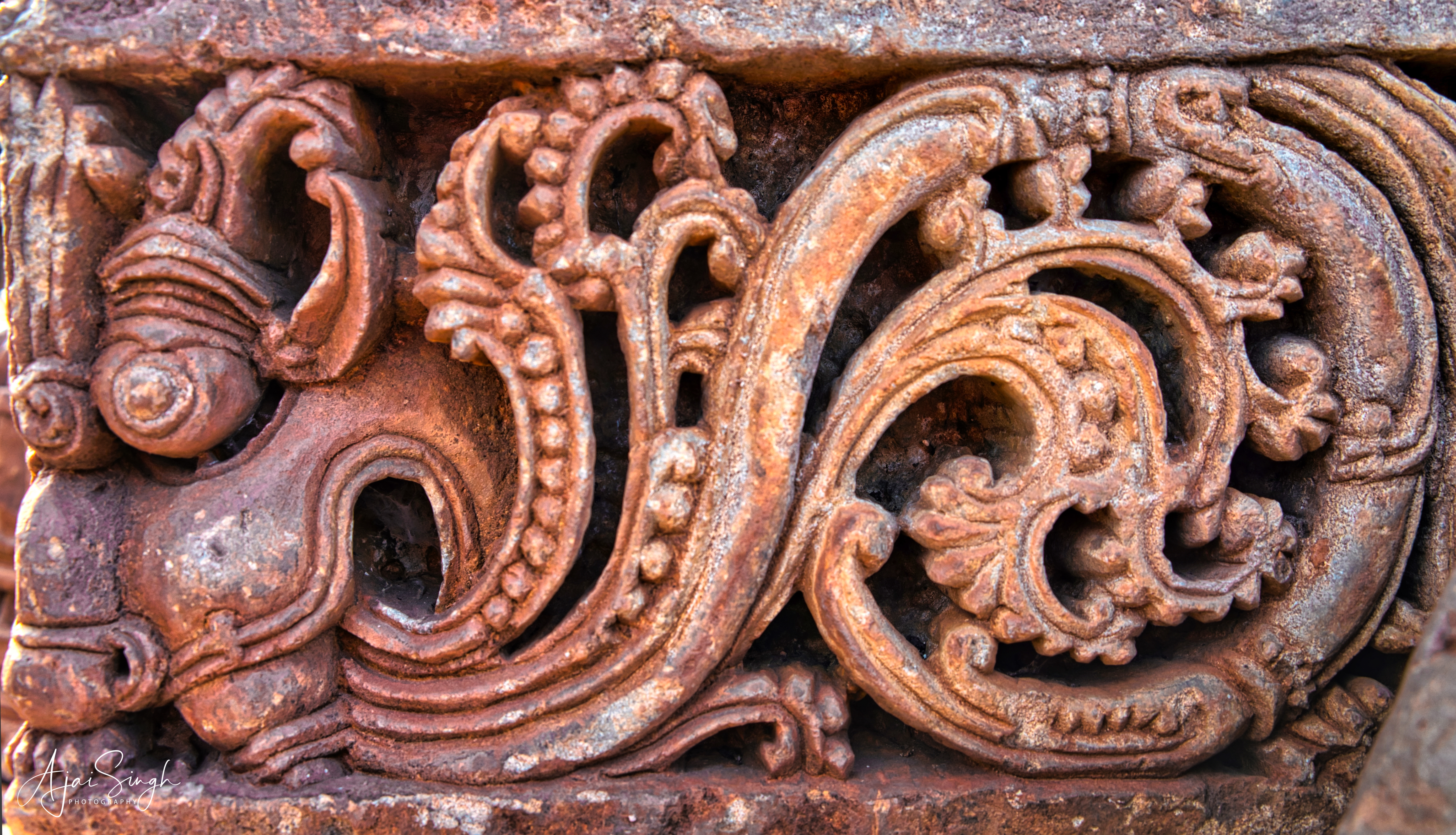 Decorative horizontal swirls below the outer parapet wall that depict sequences from epics Public Deposited