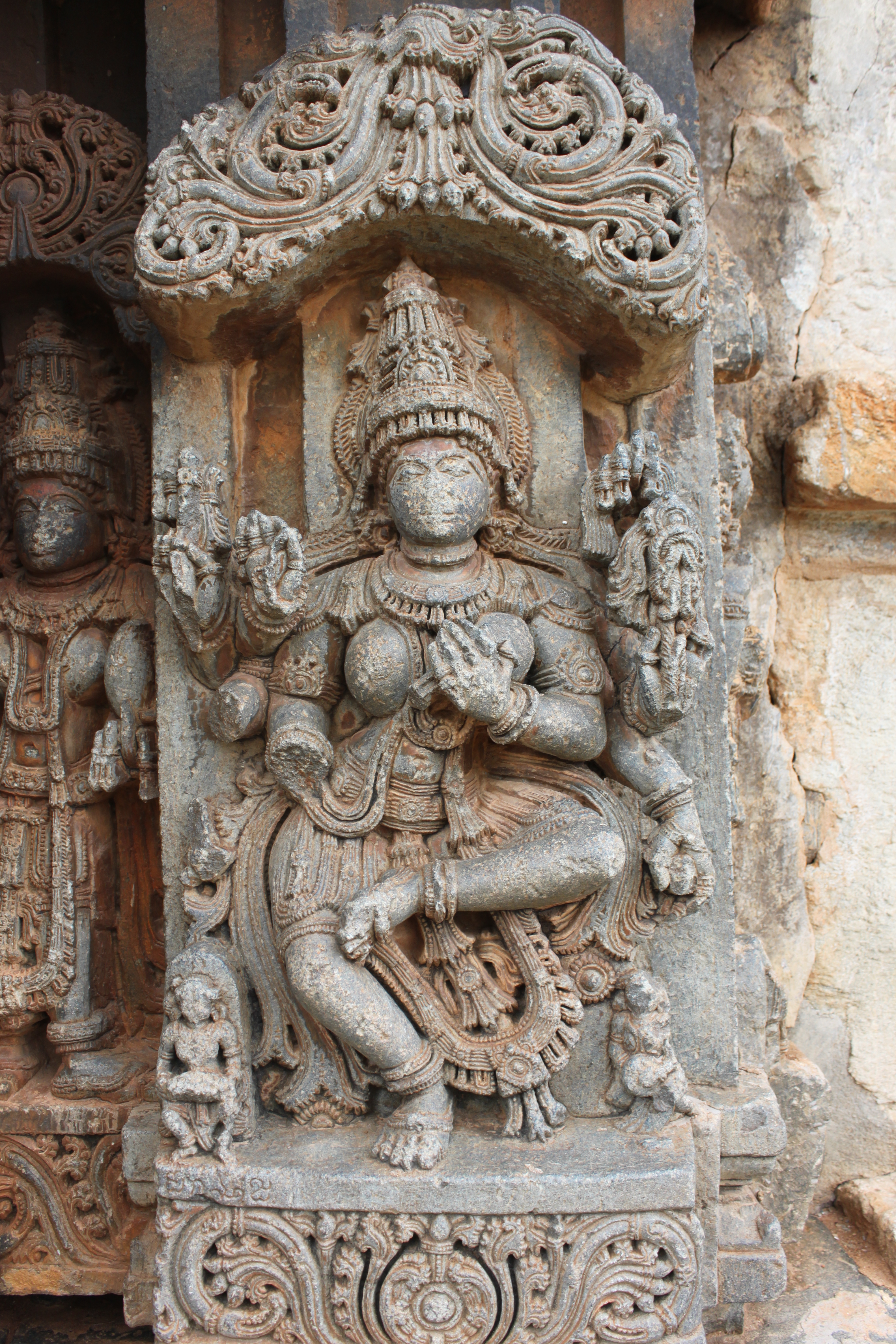 Image courtesy : Saurabh Saxena - https://puratattva.in/ The lute, though broken, suggests that the deity here is Saraswati. Other typical attributes of Saraswati here are : the bottom left hand, though partly broken has a scroll. There is the Japamala (the prayer beads) in one of the hands.