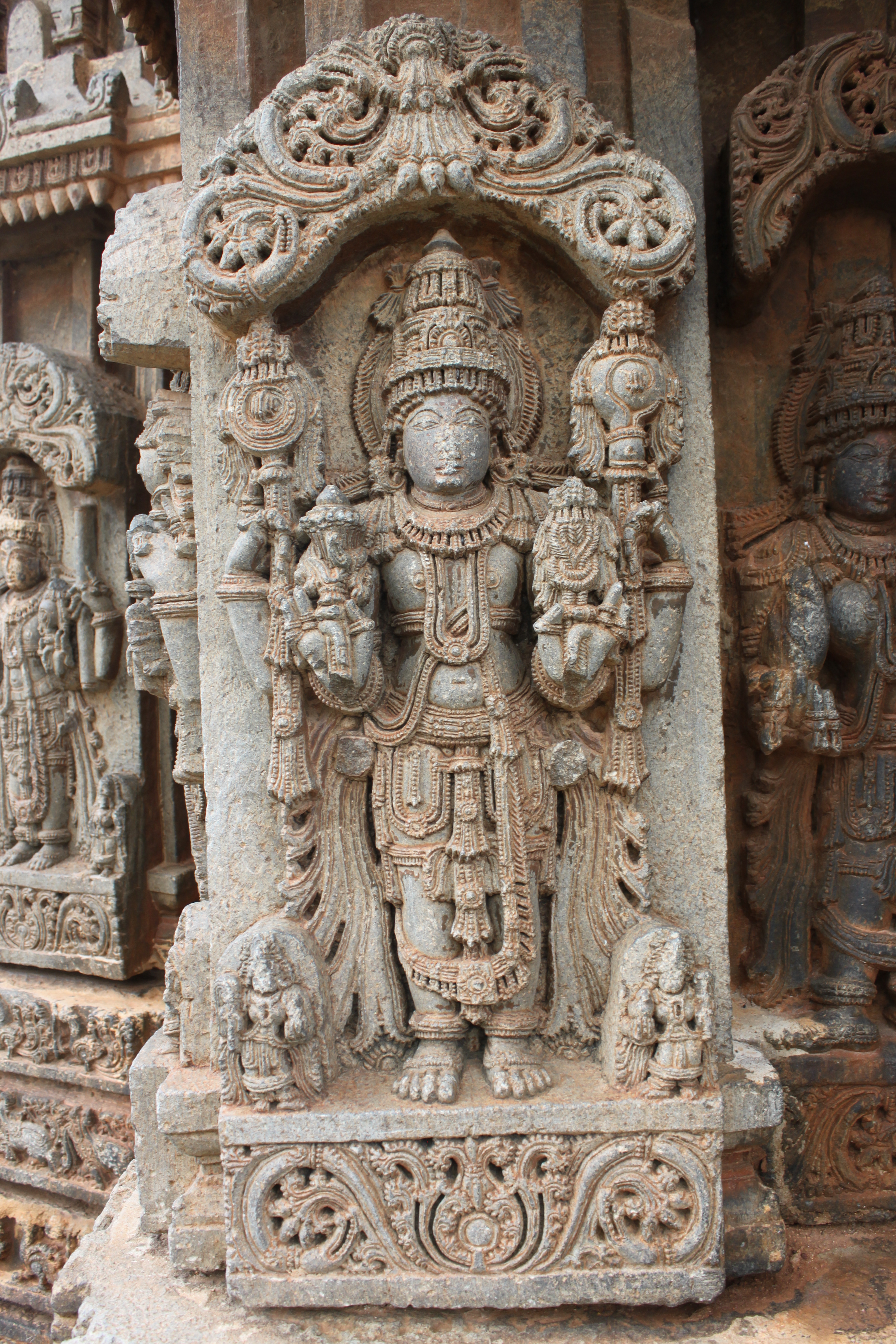 Image courtesy : Saurabh Saxena - https://puratattva.in/ The three hands of Vishnu hold Shankha (conch), Chakra (discus), Padma (lotus). The fourth hand on the bottom left is holding a noose which is partly broken.