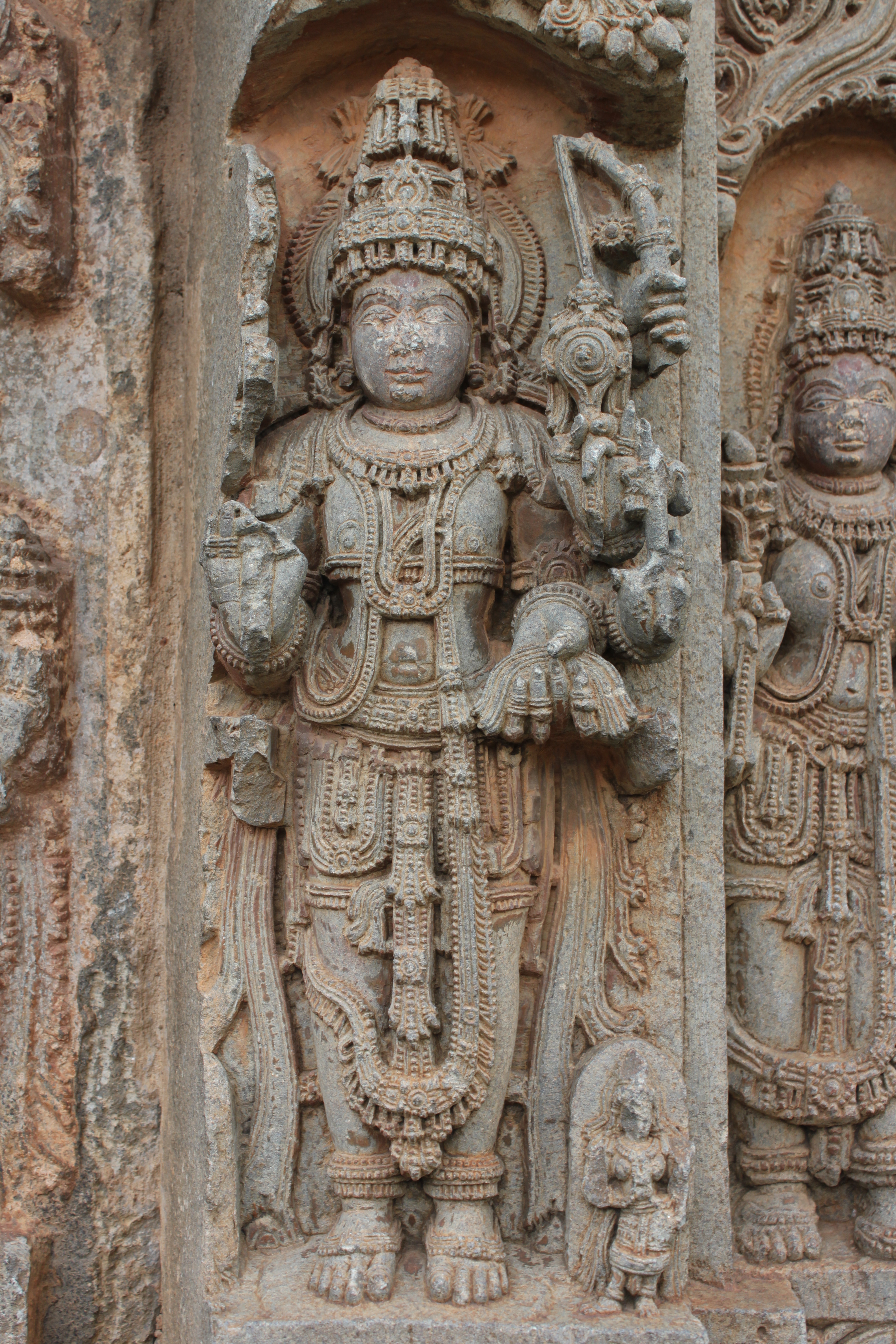 Image courtesy : Saurabh Saxena - https://puratattva.in/ Right hand side of the statue is damaged. On the left hand side, top most hand is holding a bow, which is usually how Lord Rama is depicted. The hand below the bow is holding one of the usual artefacts of Vishnu, the conch shell. The bottom right hand is holding the Japamala - the prayer beads.