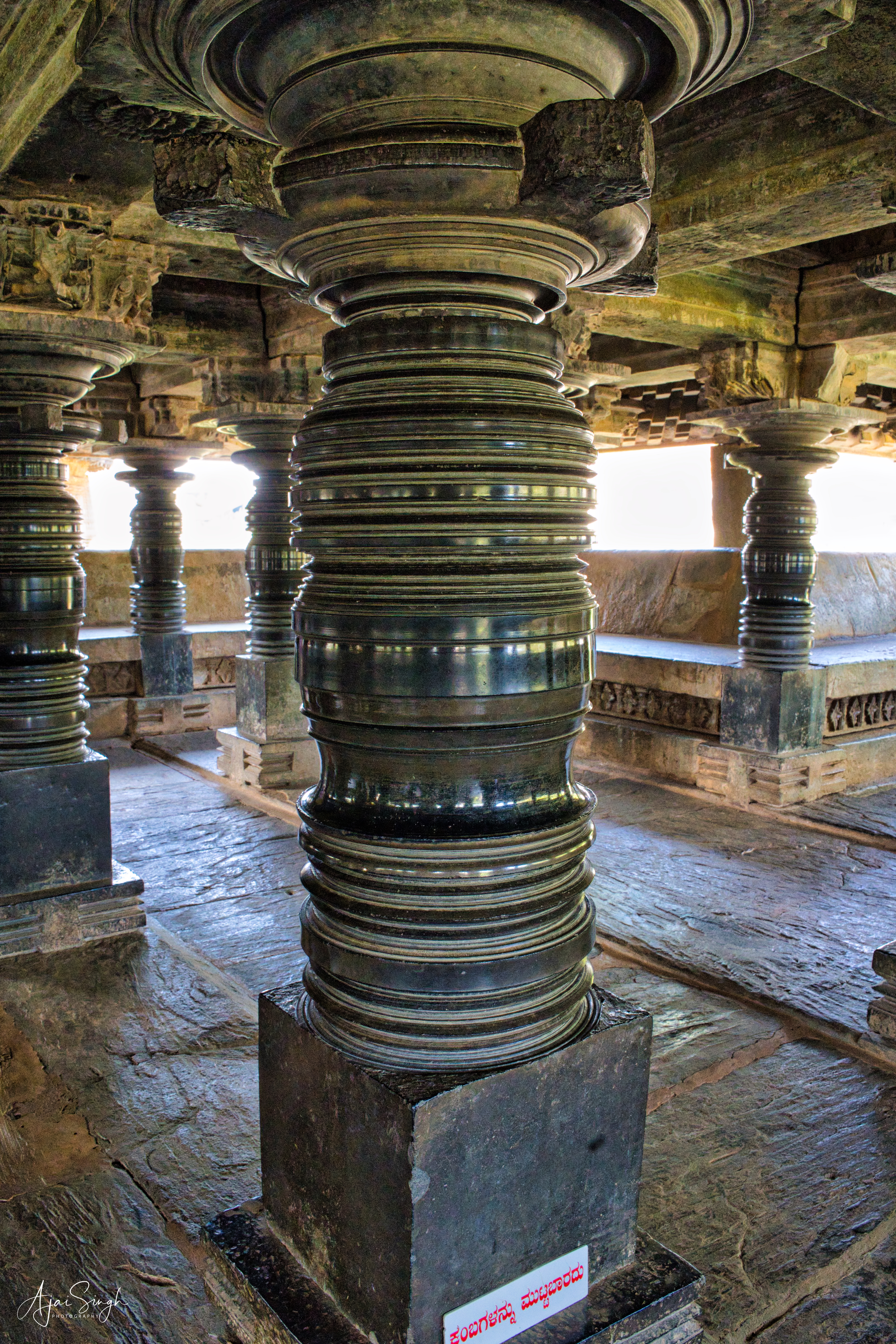 The open mantapa with its unique black pillars which support the ceiling. The polished finish could only be achieved by a lathe-type of machine. Image courtesy: Brig A.P. Singh - www.collectingmoments.in
