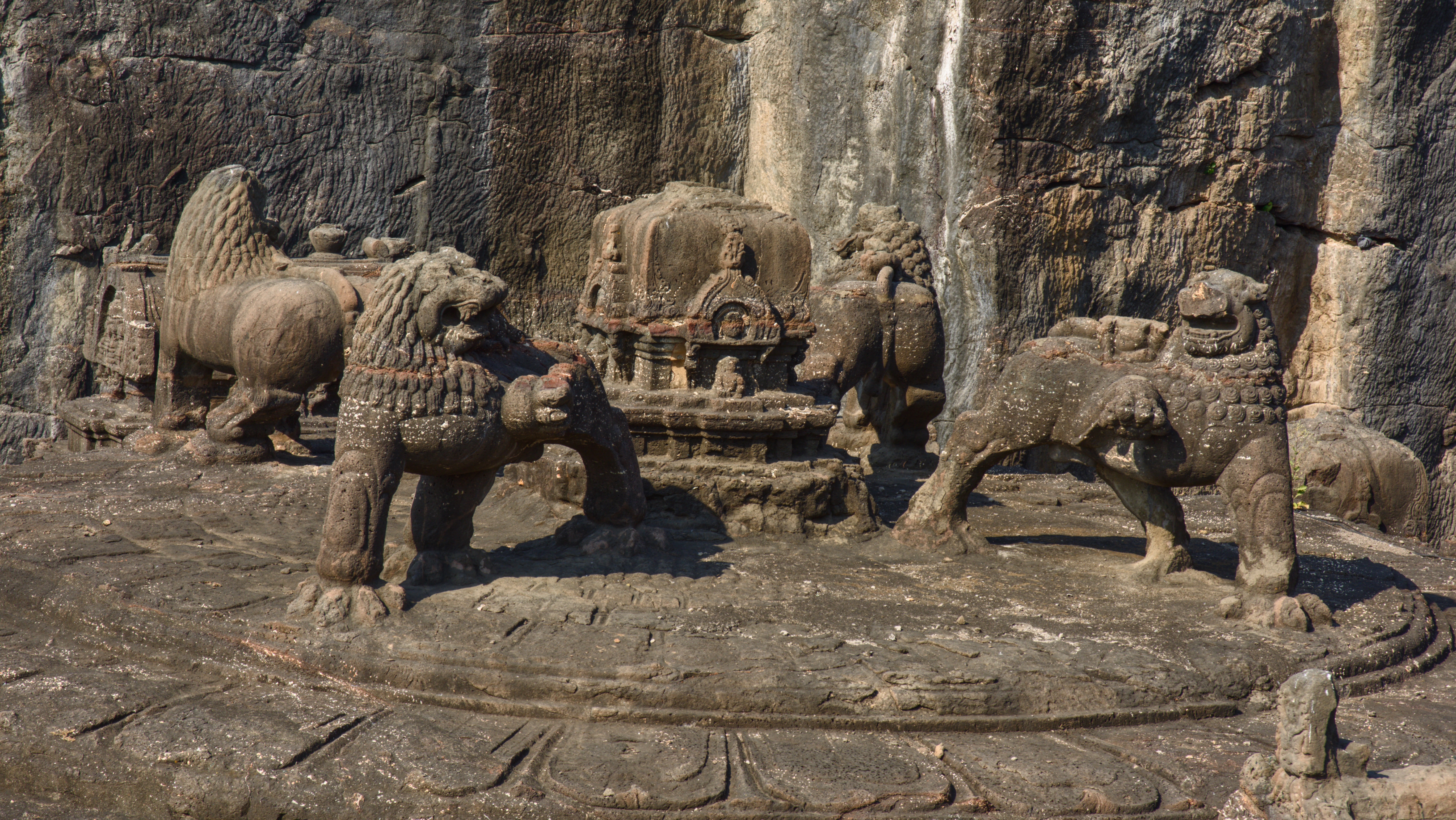 Ellora, Lion sculptures above the roof of the mandapa Public Deposited