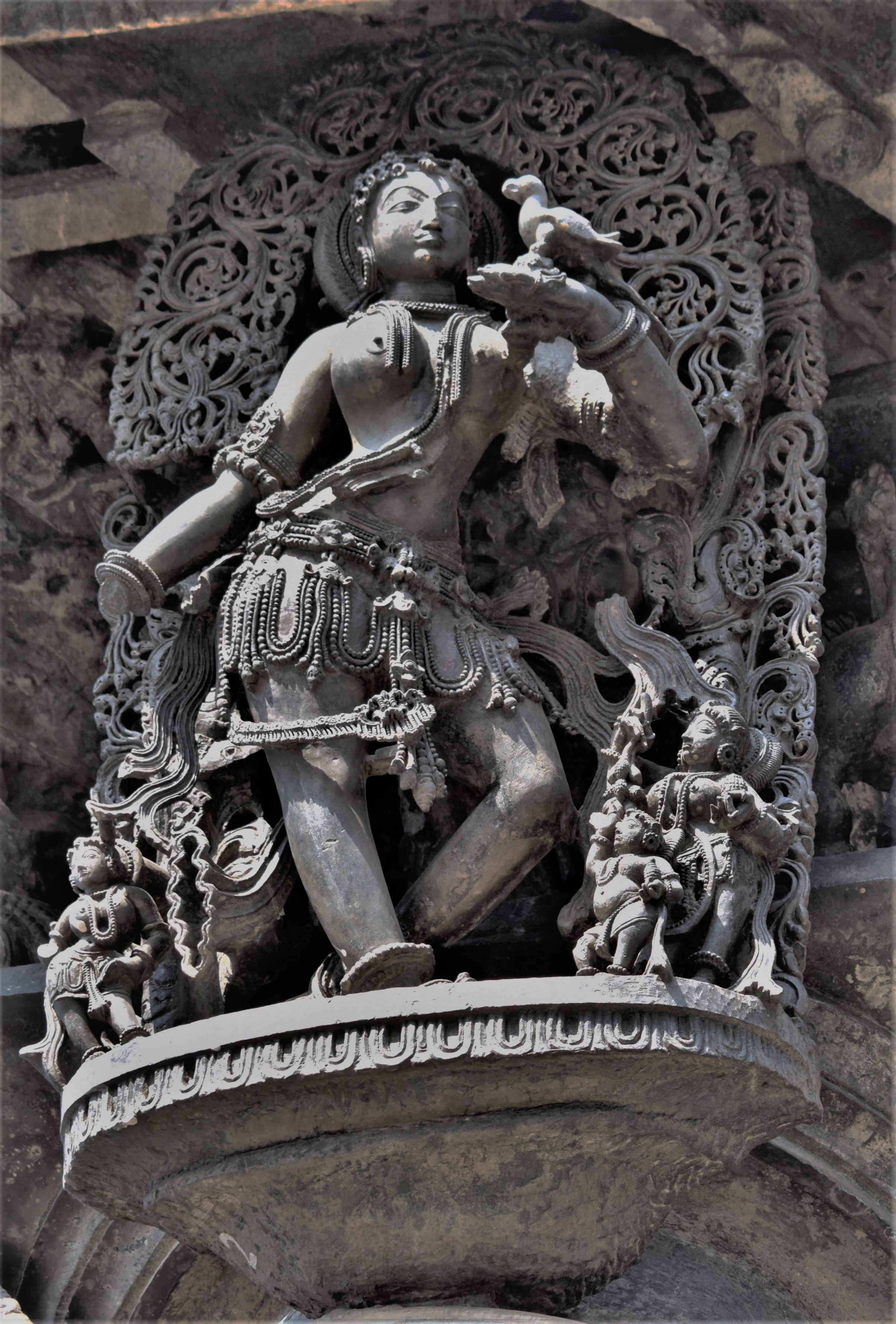 Chennakeshava temple, Beluru, Bracket figure, Shilabalike - shuka bhasini - girl talking to a parrot 公开 Deposited