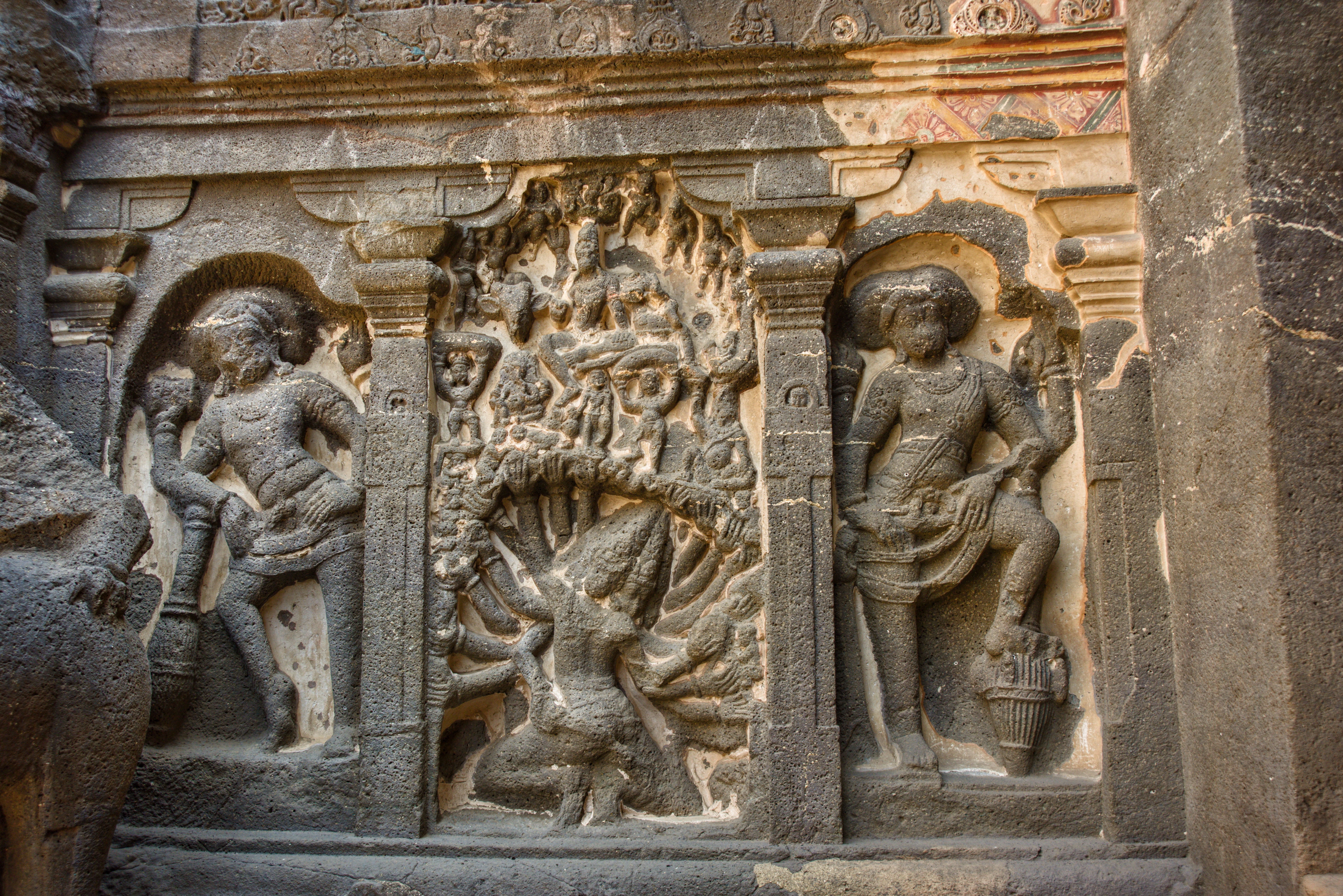 Ellora, Kailasanath, Ravana lifting Kailasa Mountain Public Deposited